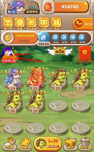 中玩家是可以领取到免费口罩的,不过领取口罩有个要求,那就是邀请5个好友进行游戏。当然这5个好友也能产生收益。相信恐龙有钱是这一系列养恐龙赚钱游戏中最正规的,这个新活动也有很多人看好。