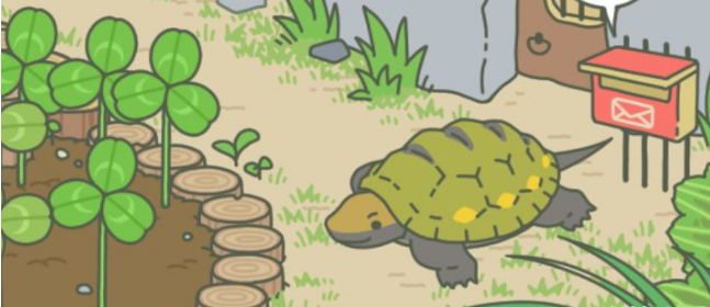 最后出现的就是乌龟啪嗒了,日文谐音,拍打水面的声音。呱呱的三个小伙伴都是内向型人格,从来都不进屋,乌龟啪嗒想进屋也进不去,因为太大了。和蜜蜂嗡嗡、蜗牛梅梅一样乌龟啪嗒也会吃你带回来的土特产并回赠和嗡嗡。梅梅相同的礼物。小编在玩的时候乌龟啪嗒出现的时候比较晚,呱呱旅行八次左右才出现。