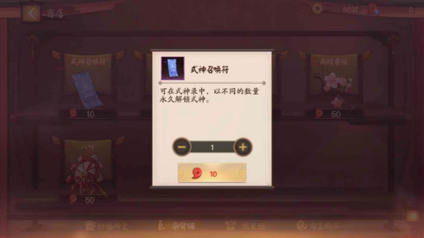 玩家想要购买永久的式神的花,则需要兑换式神召唤符,然后可以以不同的数量解锁各种永久的式神。