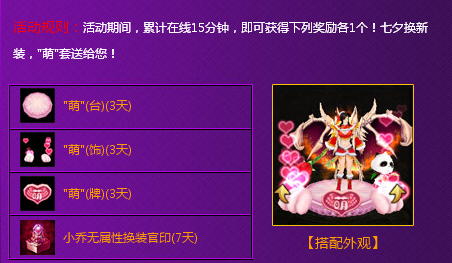 七夕活动盛典火爆进行中……玩家朋友们参与活动中即可有机会获得心心相印礼包、七夕萌套装等,还有更多惊喜等着你,随小编一起看看有哪些活动吧。