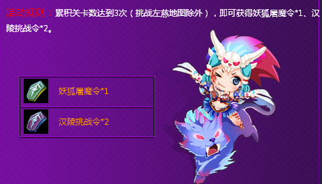 活动三:挑战关卡赢妖狐、汉陵挑战令