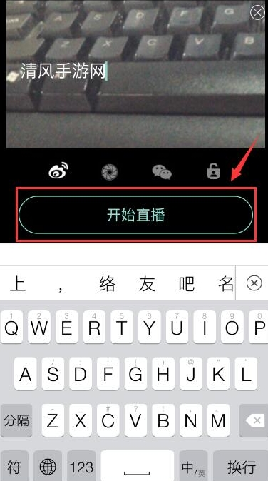 3、进入下一步后,设置你直播的标题,然后选择分享的网络,点击开始直播即可正式开始直播。