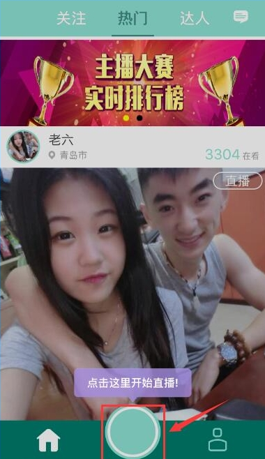 1、打开映克直播APP,然后点击最下面中间的直播按钮。