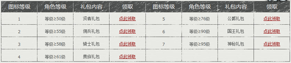 3.成功点亮图标后,将可领取不同礼包奖励;