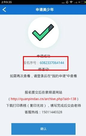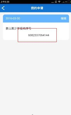 4、当你在泉频道申请报名成功后,将会显示你的报名序号:6082337064144,