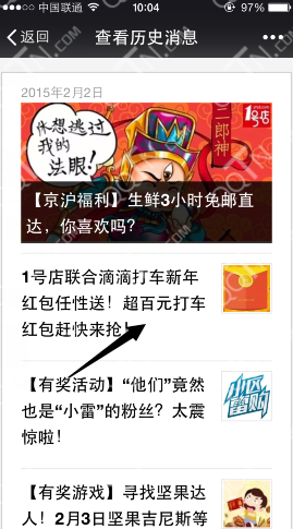 1、微信关注1号店,在查看消息内就可以看到活动入口,点击进入;