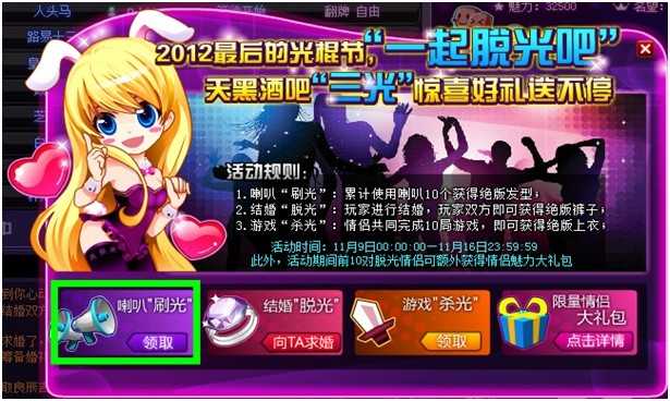 这里要注意,活动期间发喇叭,系统会自动加上一起“脱光”吧!