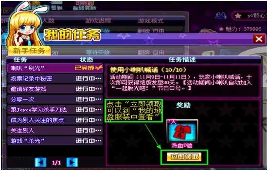 会弹出一个任务框,了解详细的内容和获得的奖励。当然帅哥和妹子获得的东西是有区别的哦。废话少说,先看看奖品是神马!!!