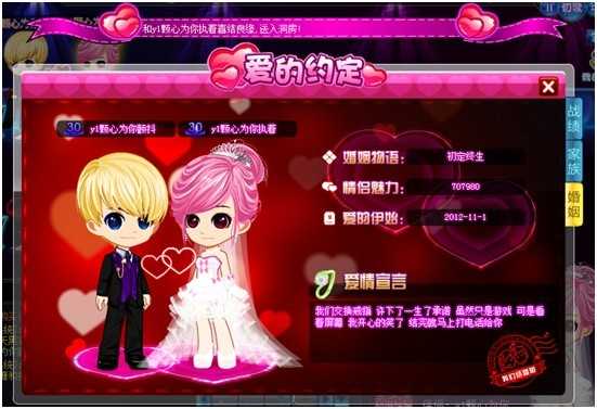这个需要大家好好去看看结婚的步骤是怎么进行的了,请您点击【结婚详细】了解。~当你屏幕上面出现以下这个画面的时间,就代表你已经脱离了单身并完成了任务了哦!