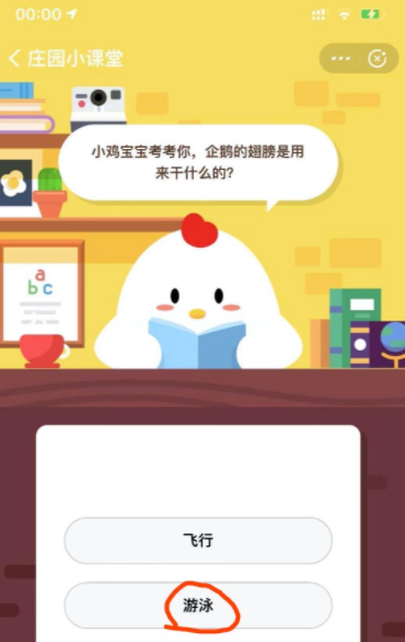 支付宝庄园小课堂11月19日的问题是,小鸡宝宝考考你,企鹅的翅膀是用来干什么的?到底是用来飞行还是游泳的呢?一起看看下文的介绍吧。