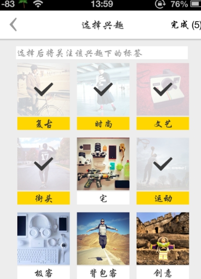 2、注册完成后,开始选择对哪些类感兴趣,如同所示。