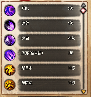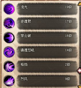 流光——XX——断缚斩——XX——烈风——穿云——魂启——魂怒——八荒