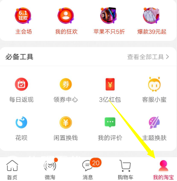 1、首先打开淘宝,点击右下角的“我的淘宝”;