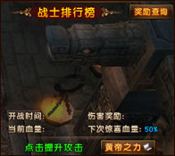 和刑天的战斗艰苦异常,为此,黄帝赋予大家天神之力,可提高玩家的攻击力。点击界面上的“黄帝之力”按钮,消耗一定银票,每次可提升2~10%攻击力。