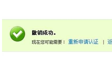2、在显示认证状态框下方即有“撤消本次认证申请”。