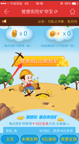 3、每天挖矿一次可获得一个金币,连续7天挖矿可额外获得一张金币兑换券;