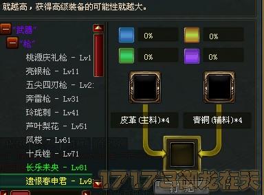 这个几率无疑是最大的,有百分之8的几率,但是要的材料很多.以武器为例,90J的武器就要青铜和皮革各4个,可以用家族功勋换。不推荐,要的价值太高了,而且名将很难出。