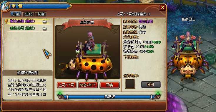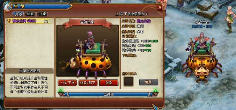 1.“瓢虫兑换券"1张加“5阶满级坐骑”1个可以兑换1个极品稀有坐骑——瓢虫坐骑