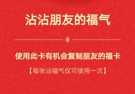 支付宝沾福气卡今天新上线的一张卡,作用相当于万能卡,可以直接从朋友那里沾沾福气,复制你想要的卡。而沾福气卡怎么用呢?下面教大家详细用法。