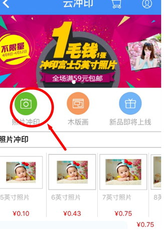 2、点击“云冲印”,如图所示!