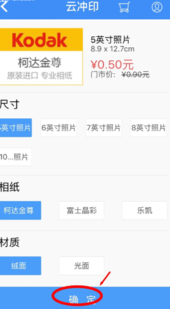 3、选择“照片冲印”,选择合适的尺寸,点击“确定”。