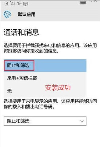 确认已经安装成功后,就可以在下拉列表中把“阻止和筛选”用于拦截骚扰来电和和用于来电显示。