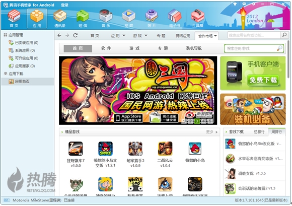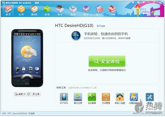 腾讯手机管家pc版v1.7版本火热发布!激情2012伦敦奥运皮肤闪亮登场,界面清爽大方线条明朗有力,邀您共享伦敦奥运盛典,为中国奥运健儿加油!