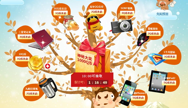 推出了“欢乐摇钱树 10万元奖品大放送”活动,每天都有六次机会抽取到1000Q币的大奖,下面来看看活动介绍。