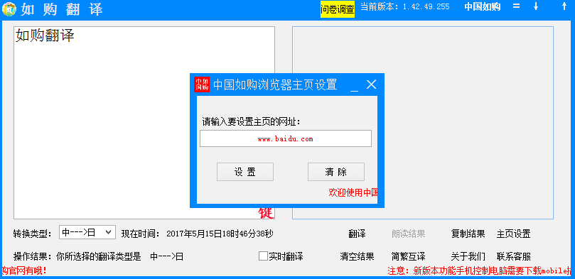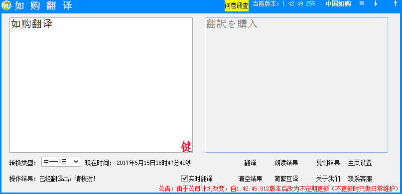 如购翻译软件支持英语、日语、法语、俄语、泰语等12国语言与中文的互相翻译,以超快速的即时翻译为特点。此版本为去版,界面清爽再无恼人广告!初次使用注意设置: