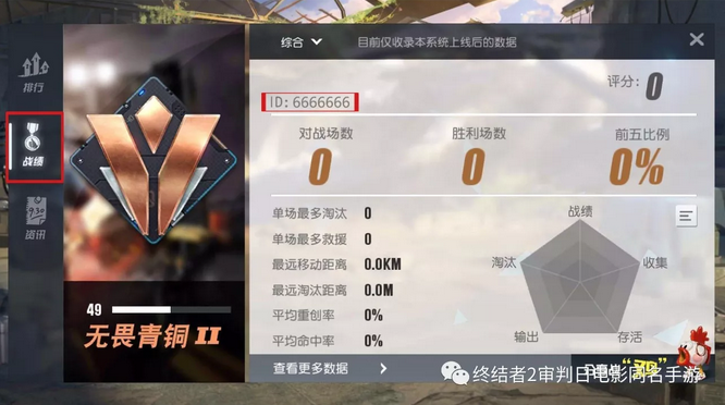 在 [战绩] 中的昵称下方可以看到自己的数字ID