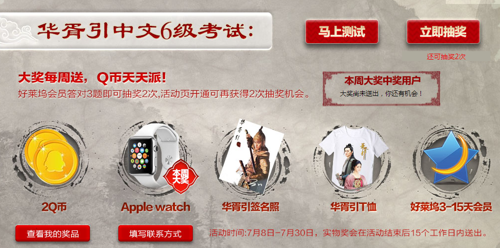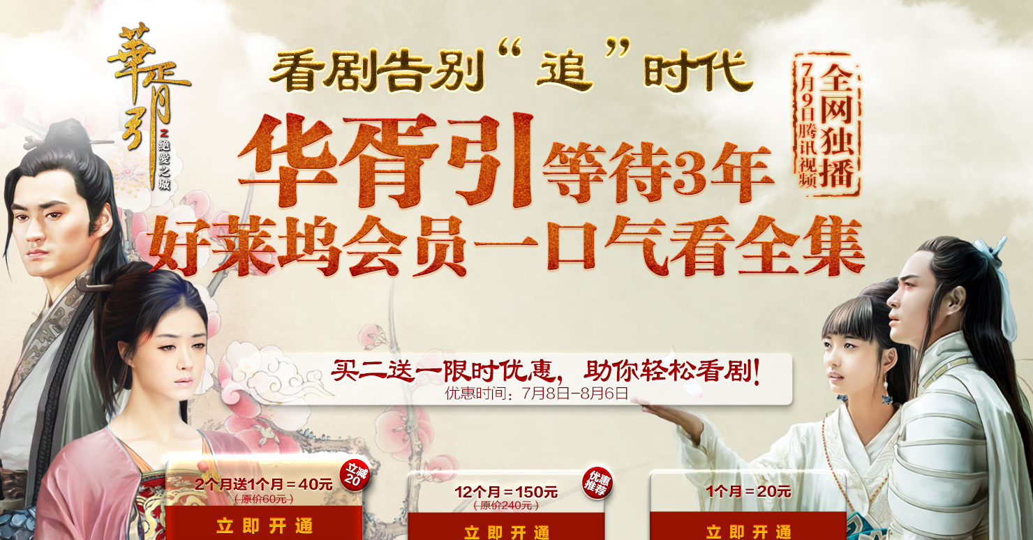 由独家播出的《华胥引之绝爱之城》于7月9日开播,好莱坞会员可享受一口气看完全集的特别优惠。为了鼓励大家开通会员,推出了多项优惠套餐,而且如果你是好莱坞会员还可以参与华胥引中文6级考试哦!答对即可抽奖!Q币、好莱坞会员等你来拿!