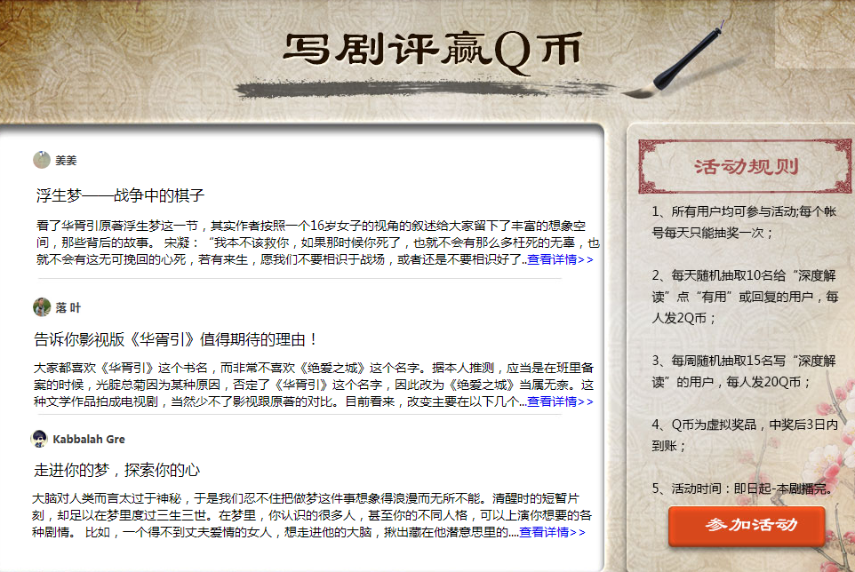 大家也可以参与最下方的写剧评赢Q币的活动,每天将会随机抽取用户发放Q币。