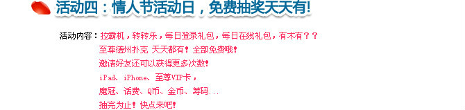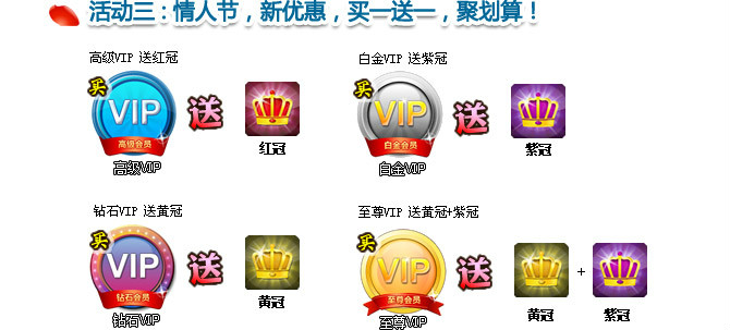 2012情人节即将到来,亲爱的玩家,请问您准备好表白了吗?准备好玫瑰花了吗?情人节电影票预订好了吗?爱她就抓住她,不要错过她——至尊情人节VIP半价活动,错过就等一辈子!!