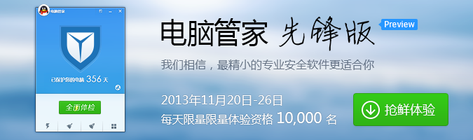 腾讯电脑管家发布消息称筹备已久的先锋版与用户见面了,推出了腾讯电脑管家先锋版的限量体验版本,新版本更轻快、更、更有趣。