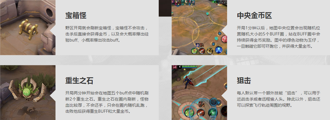 地图上有属于不同阵营的不同出生点,每隔一定时间会有不同的事件发生。