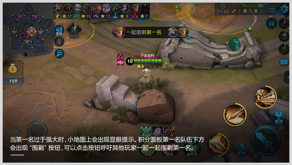 尽量考虑优先击杀星星比较多的队伍,这样获取的分数也就更高。当自己队伍分数落后时,注意走位和策略,多围剿高星的敌方英雄,可以瞬间扳回劣势!