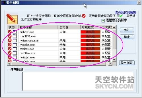 看完扫描报告后,我便立即运行终截者的安全回归功能重启系统,安全回归完毕自动重启后,终截者提示竟然禁止了10个高风险病毒程序(如图4所示)。