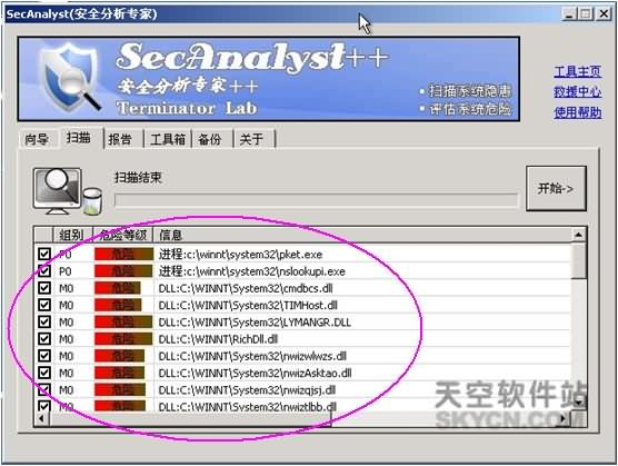 为了想弄明白该网站到底挂的是什么木马,本人出于好奇,便将终截者抗病毒软件给关了,重新登录QQ妹主页,登录后未发现异常现象,两分钟后我便关闭了该网站,重新启动终截者,并用终截者的扫描功能扫描一遍系统,看该网站是否真的给我的爱机安装了病毒,当扫描完毕后,我被扫描结果吓呆了,发现它竟然毫不留情地给我机下载了十多个病毒程序(如图3所示),让我的爱机在几分钟之内便成了毒窝。