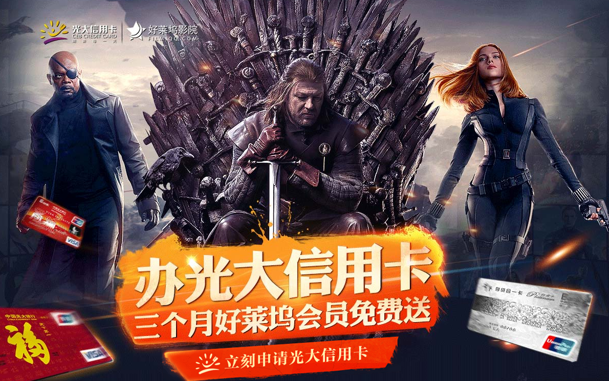 活动期间,在线申请办理光大信用卡并受理成功的用户即可获得三个月好莱坞会员,具体规则请看活动说明。