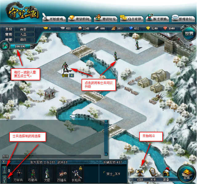 2、右下角可以选择士兵或者武将,点击然后放置就好。有的士兵需要一定的等级才能解锁,我4级了,已经可以使用文臣和双锤兵了,枪兵还不能用。