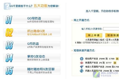 据了解,这个“QQ千里眼钻石版”收费为10元/月,其服务包括::“QQ号防盗”、“抓出隐身Q友”、“Q币防盗”、“掌控Q友动态”、“随时随地和Q友狂聊”。其中最吸引人的就要数“抓出隐身Q友”这项服务了。