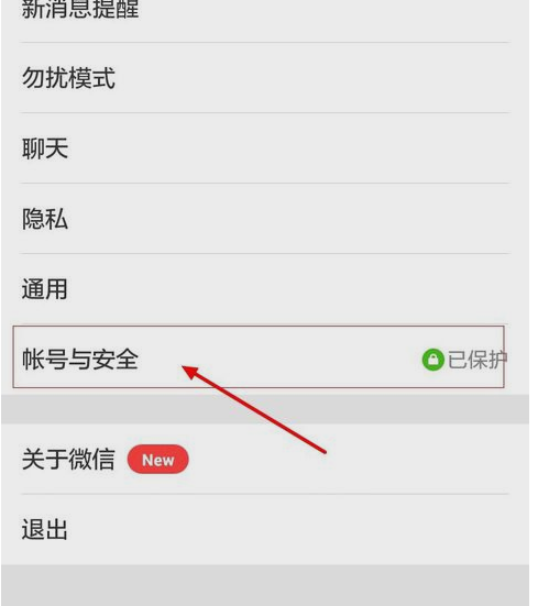 接着,进入之后,看手机大概屏幕的中间位置,有‘账号与安全’的选项,再轻轻点击它。