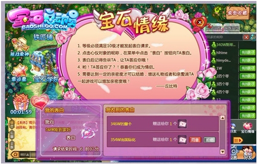 充满爱意的城镇装扮、浪漫的爱情界面、温馨的表白方式,《宝石总动员》情侣系统用最甜蜜的方式帮助不同性别的玩家结成姻缘。只要双方游戏等级都达到10级以上,并向亲爱的TA告白成功,就可以正式开始自己在宝石世界的情侣之旅了。玫瑰花、情书、熊,所有的道具都能帮助你用来打动对方的心,获得对方的青睐哦。丘比特之箭已经瞄准,快来《宝石总动员》找寻你的“宝石”吧。