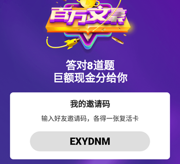添加下面的邀请码你就可以获得一张复活卡