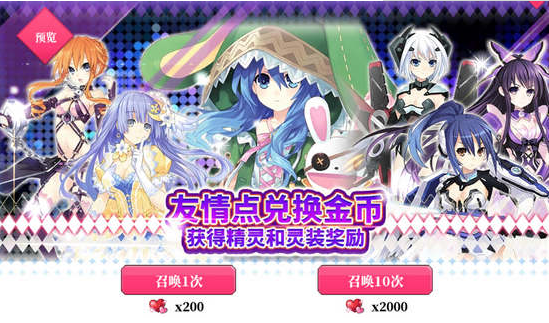 消耗钻石或者友情点进行召唤有机会获得灵装,购买10次必得五星灵装或A级以上精灵。