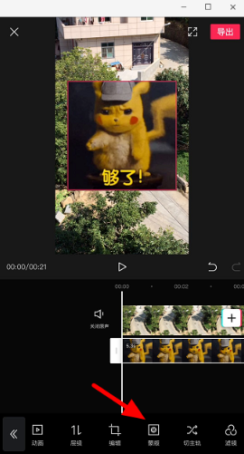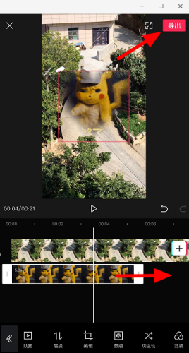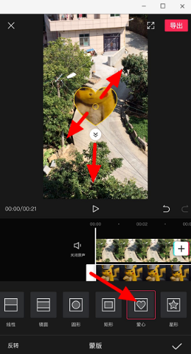 拖动蒙板轨道右侧白框可以调整时长,点击“导出”即可。