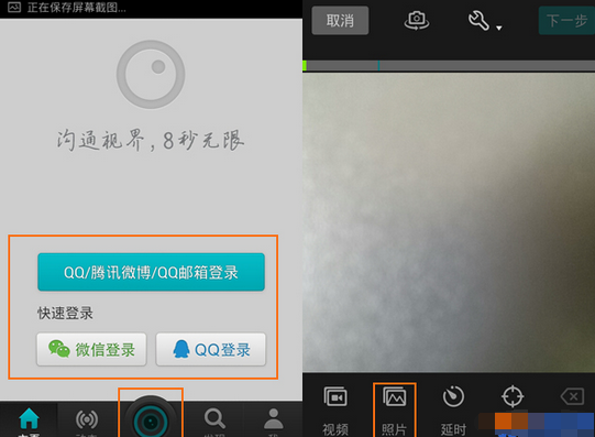 1、首先,用QQ,或者微信账号登陆微视软件,然后点击底部拍视频的按钮,进入后选择“照片”。