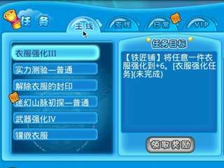 为玩家的成长贴心设计的任务,伴随玩家角色成长的始终。引导玩家去了解游戏的各项玩法功能,告诉玩家在每个成长阶段应该做什么。任务系统里最为庞大的一支,涵盖了场、副本、铁匠铺、技能学习、商城、荣誉等与战斗有关的所有内容。