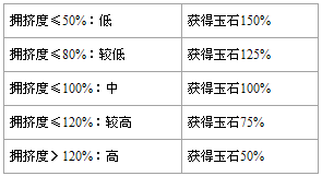 每个区域都会有一个人数基数,根据当前区域的人数和基数的比值(拥挤度),得出玩家“掠夺”的玉石!
