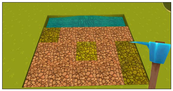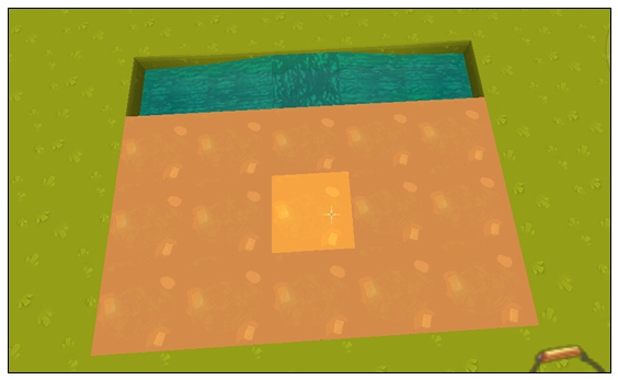 4.用锄头把土块挖成可以种植麦子的状态,边上的水的作用是用来保证土块一直可以维持这个状态的;